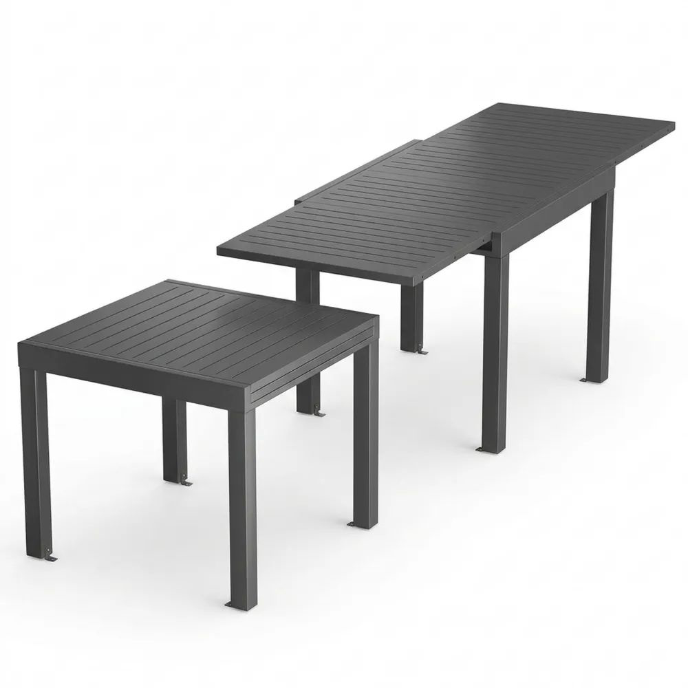 Ausziehbarer wetterfester Gartentisch aus Aluminium für 4-6 Personen, Dunkelgrau